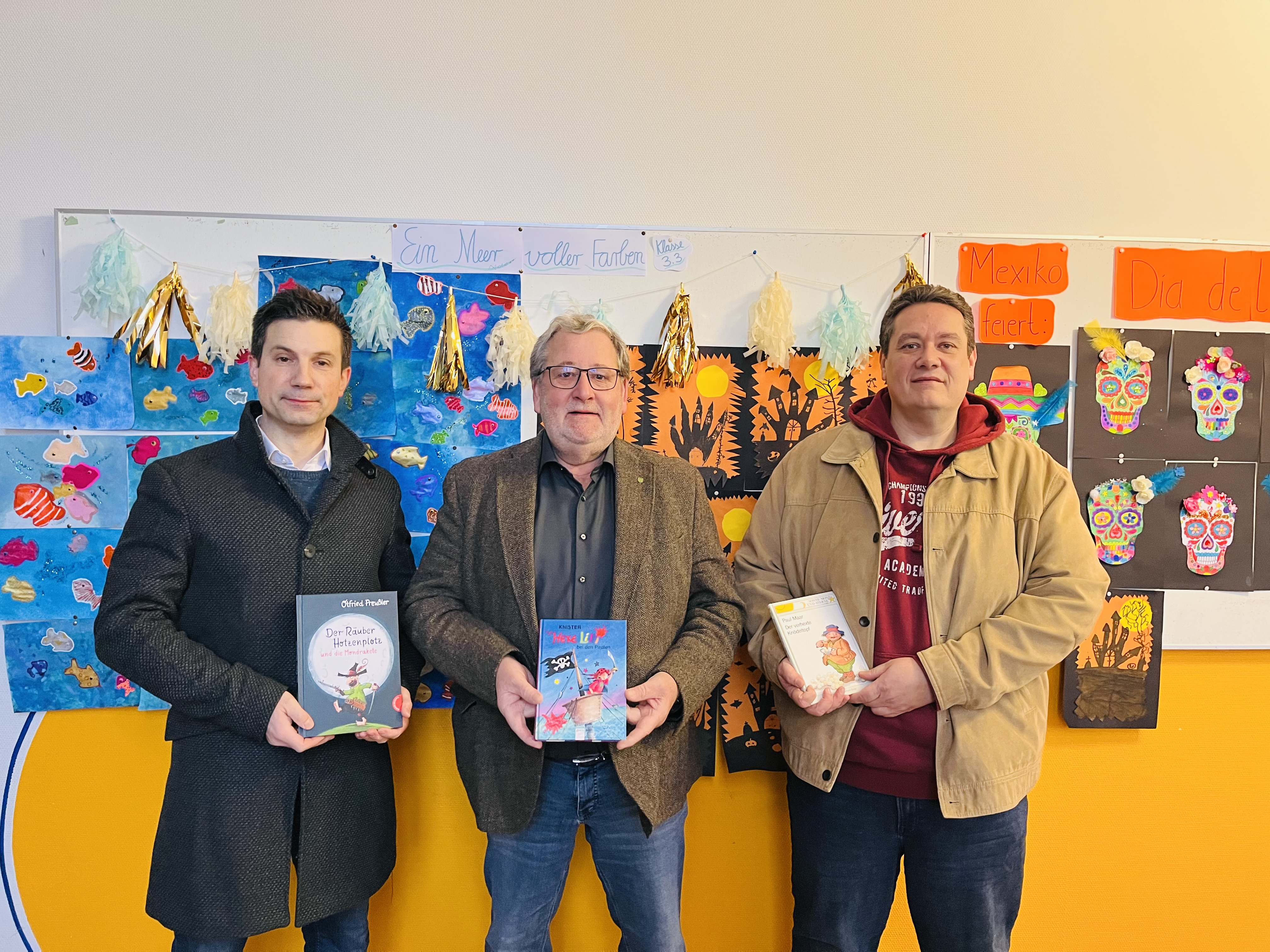 Der Bürgermeister war nicht allein zum Vorlesen da: Auch die Vertreter des Fördervereins der Grundschule Luitpold, Dominic Ruffing (l.) und Andreas Wagner (r.), begleiteten die Aktion.
