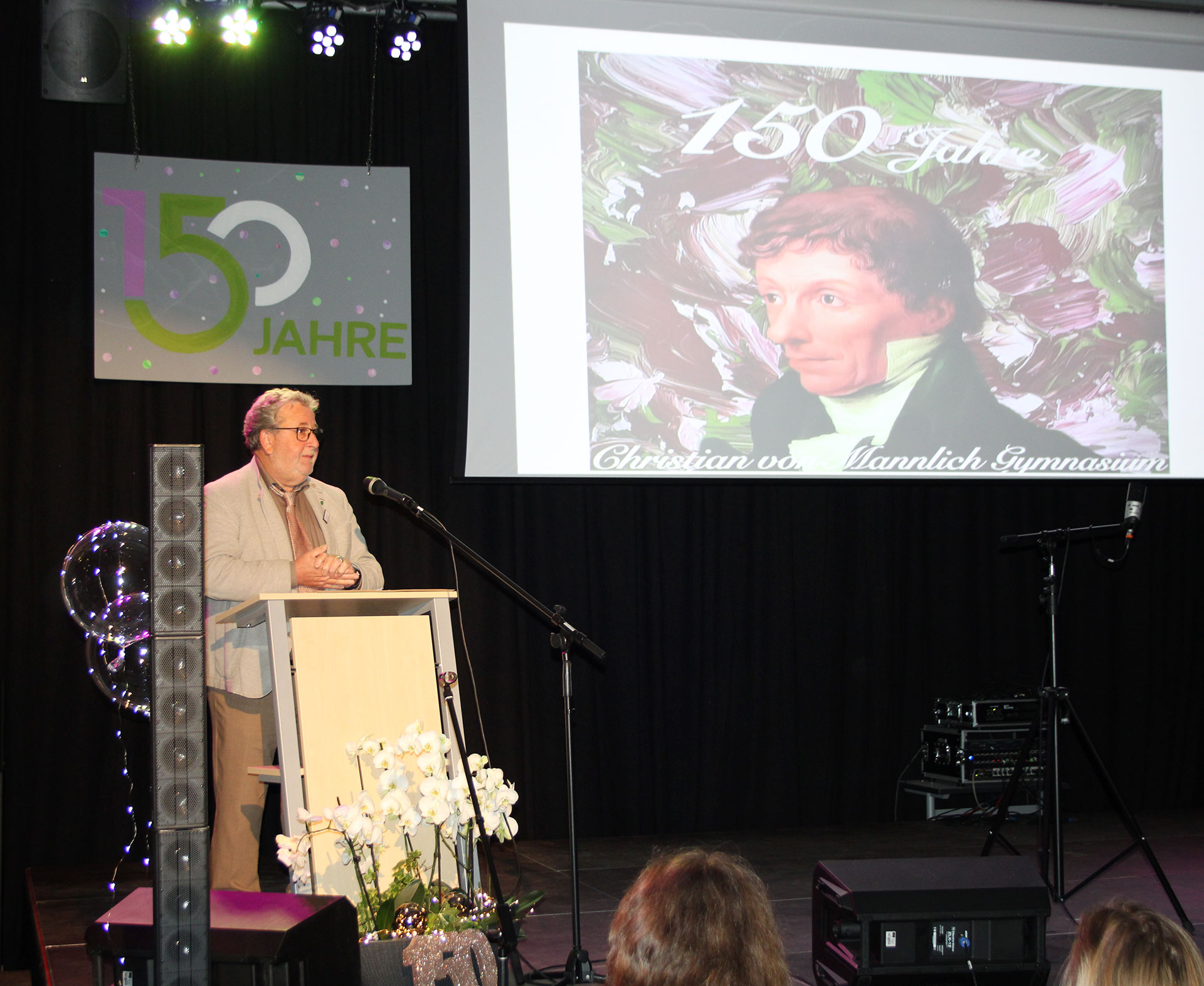 Zunächst begrüßte Schulleiter Dirk Kleemann die zahlreichen Gäste, darunter Bildungsministerin Christine Streichert-Clivot, Landrat Frank John, Bürgermeister Manfred Rippel sowie Thorsten Bischoff, den Bevollmächtigten des Saarlandes beim Bund, sowie Schulleiterinnen und Schulleiter weiterer Schulen und auch den früheren Landrat Clemens Lindemann. Anschließend gelang ihm ein unterhaltsamer Überblick über die 150jährige Geschichte des Gymnasiums. Dabei sagte Kleemann: „Die Familie des Mannlich-Gymnasiums wächst mit jedem Jahrgang, da sich frühere Schülerinnen und Schüler weiterhin verbunden fühlen.“