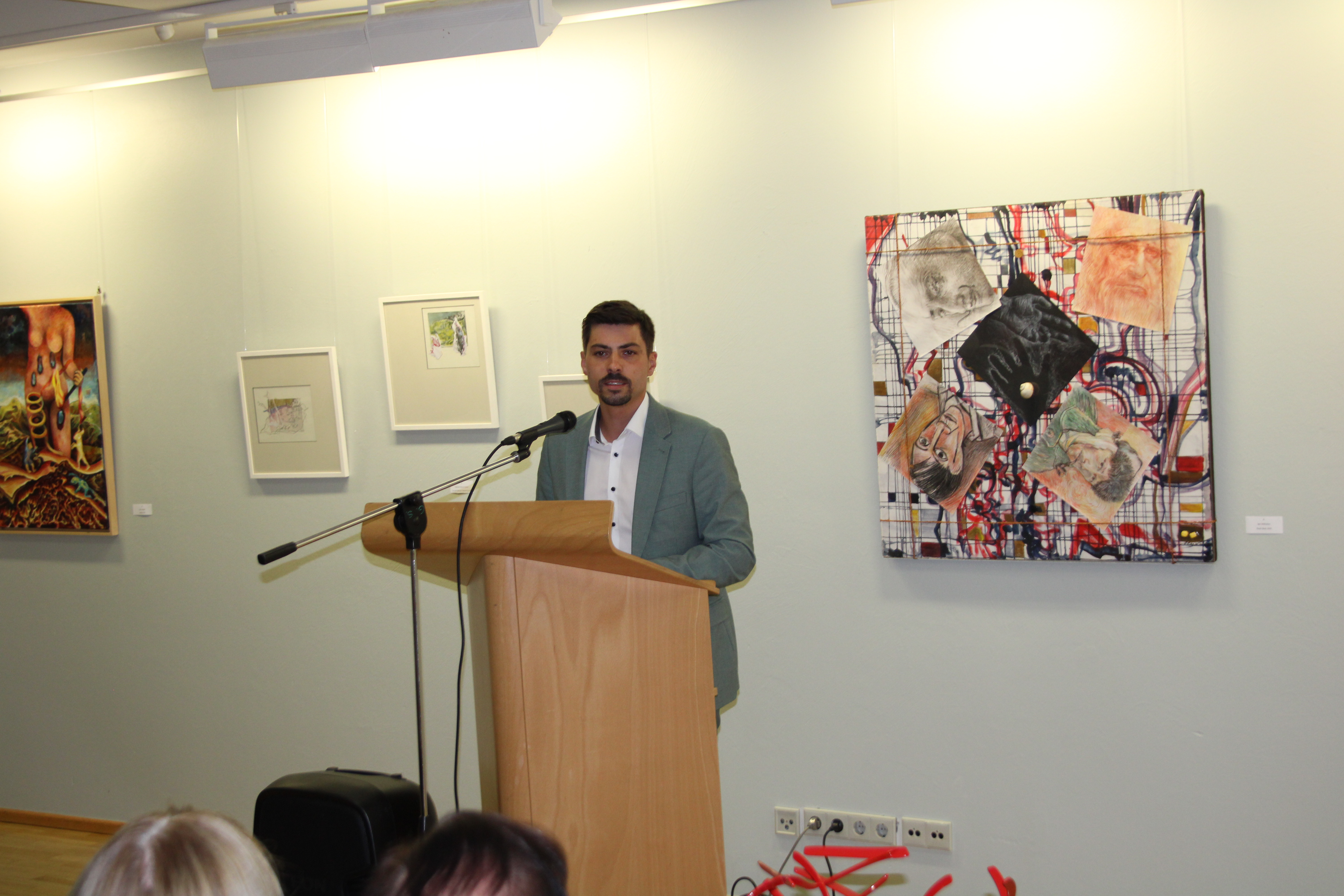 Die Kultur sei gerade für eine Stadt wie Homburg mit dem großen Unicampus von Bedeutung. „Es wird schon darauf geachtet, wie wir mit den weichen Standortfaktoren umgehen“, sagte der Beigeordnete. Besonders hob er die Arbeit der Künstlerinnen und Künstler nicht für die Jahresausstellung, sondern über das ganze Jahr hervor, indem er auf die weiteren Ausstellungen sowie die ARTmosphäre einging. Man sei stolz darauf, was die Homburger Künstlerinnen und Künstler leisteten. Er ging auch kurz darauf ein, dass im Vorfeld der Jahresausstellung nicht alles gutgegangen sei, doch sei die Verwaltung selbstkritisch und wolle dieses Vorgehen verbessern, versicherte Philipp Scheidweiler.