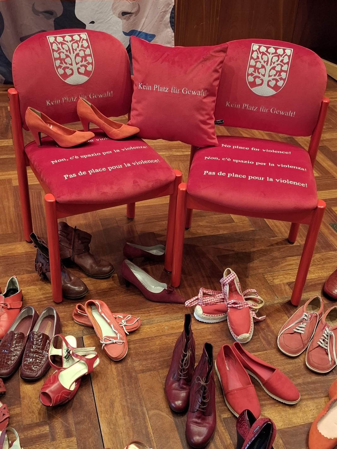 Die Aktion mit den roten Stühlen und Schuhen sehen die Beteiligten nun als Fortsetzung dieses erfolgreichen und ausgezeichneten Projektes sowie als ein weiteres sichtbares Zeichen der Solidarität mit den Betroffenen und mit der Partnerstadt Albano Laziale.