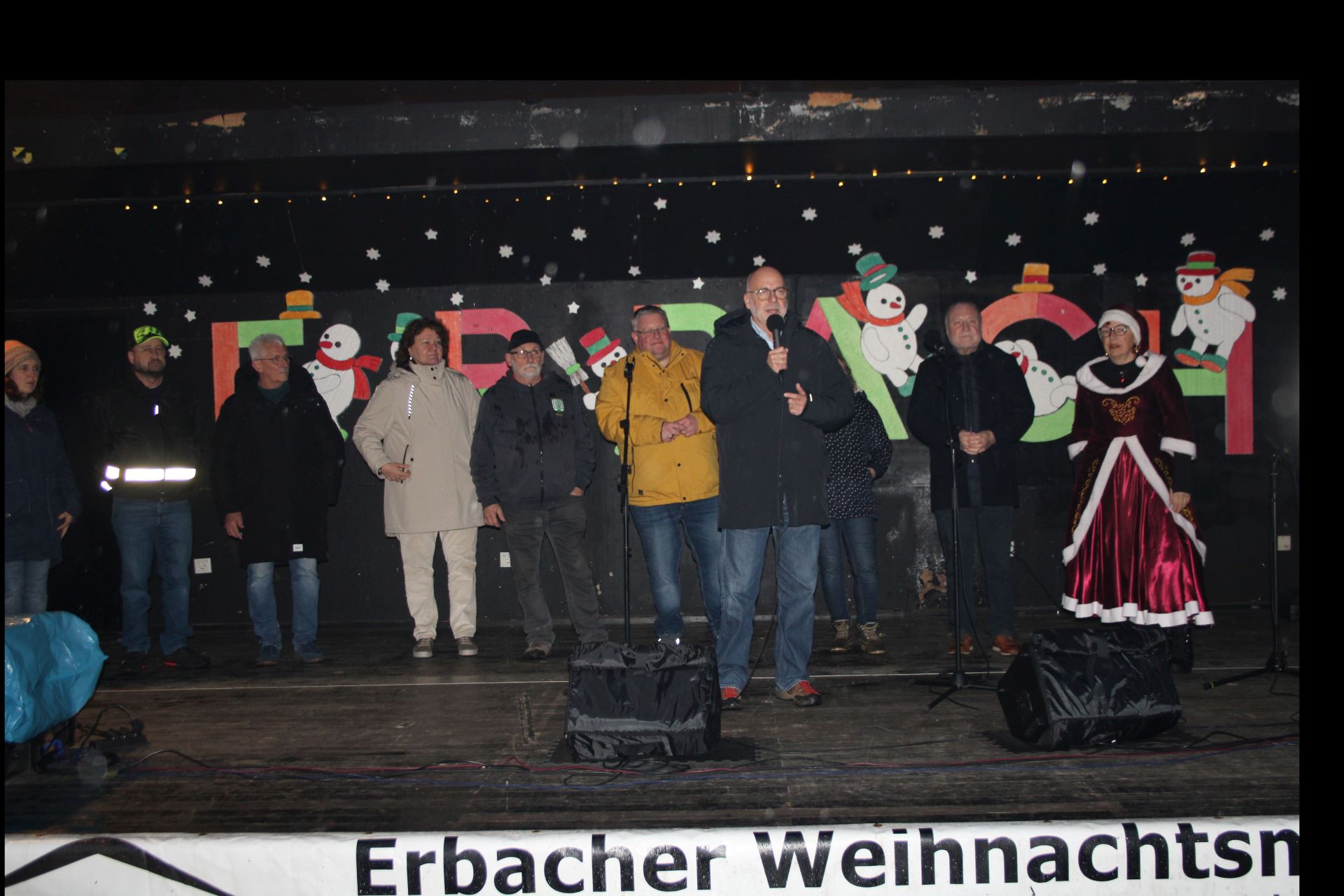 Friedrich Burgard als 1. Vorsitzender der Stadtteilkonferenz „Lebendiges Erbach“ und Leiter der Arbeitsgemeinschaft Erbacher Vereine, Ortsvorsteher Markus Uhl und Oberbürgermeister Michael Forster begrüßten gemeinsam die Gäste auf dem Weihnachtsmarkt. Michael Forster dankte der Stadtteilkonferenz „Lebendiges Erbach“, dem Ortsrat von Erbach, den vielen Vereinen sowie den Standbetreibern und allen Helferinnen und Helfern für ihren Einsatz.