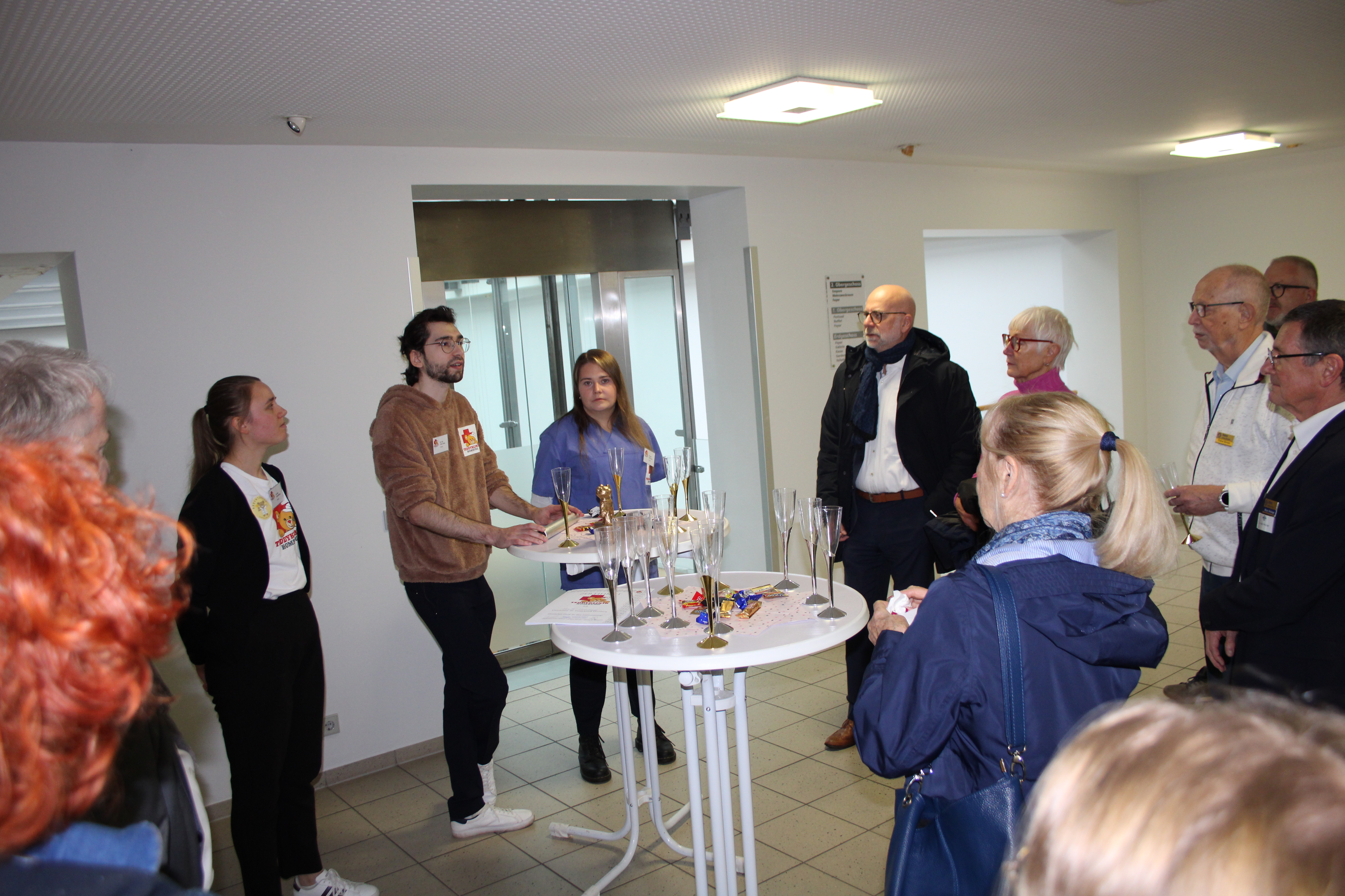 Von rund 160 Studentinnen und Studenten der Medizinischen Fakultät sowie Auszubildenden wird die Teddyklinik betreut, zehn Studierende fungieren dabei als „Obärärzte“ und leiten einzelne Bereiche. Dazu kommen noch etwa 60 Studierende, die im Hintergrund wirken. Geleitet wird die Teddyklinik von Chefarzt Dr. ted. Julien und den Chefärztinnen und Dr. ted. Julia und Maria. Sie erklärten den Sponsoren die Abläufe und zeigten die einzelnen Bereiche von der Annahme über Untersuchungs- und Verbandbereiche bis zum Röntgen, den OP´s, dem Labor und der Apotheke. Auch für Zähne und Augen gibt es eigene Stationen.
