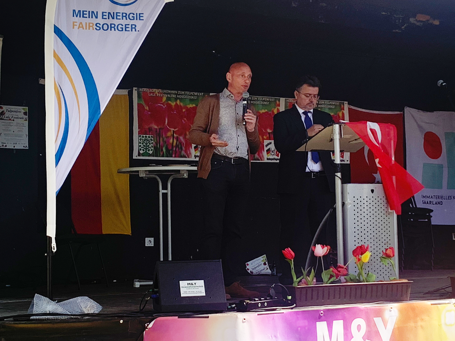 Bild 3: Klaus Friedrich (l.) und Nurettin Tan (r.) erinnerten in ihren Ansprachen an die Anfänge des Tulpenfests und hoben hervor, wie sich die Veranstaltung zu einem lebendigen Fest der Begegnung entwickelt hat,