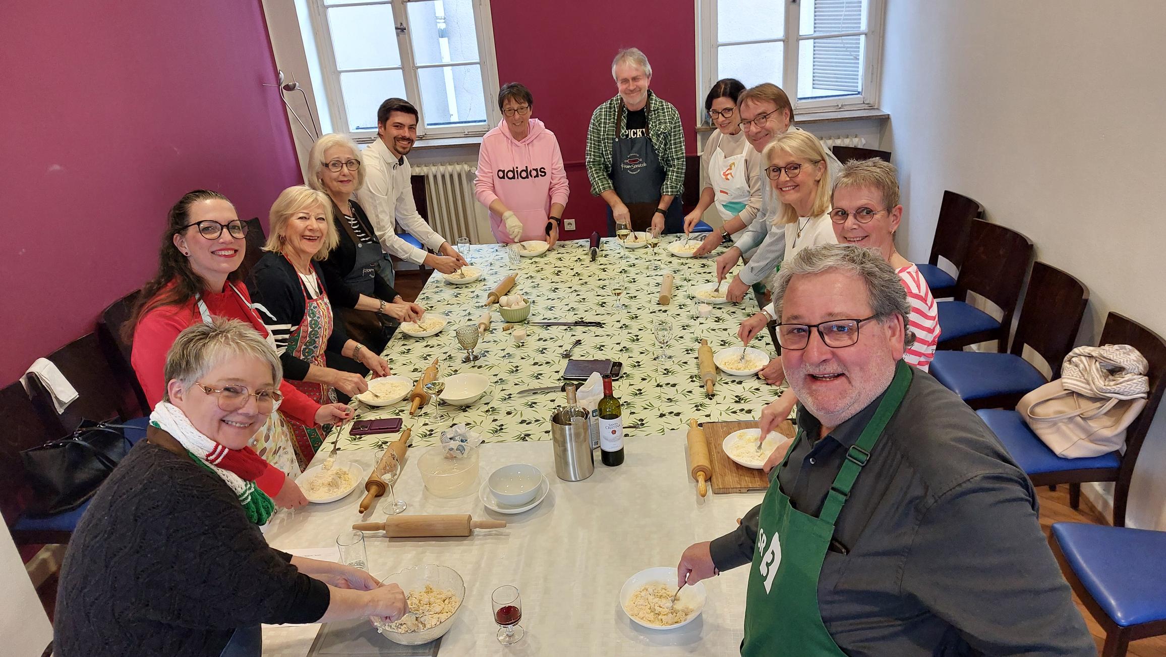 Im Mittelpunkt des Abends stand das beim letzten Besuch in Albano Laziale erworbene Wissen über die Kunst der handgemachten Pasta. Gemeinsam mit den Teilnehmerinnen und Teilnehmern des regelmäßigen „Albano-Stammtischs“ und Beteiligten der letzten Gruppenreise im November 2025 wurde mit viel Freude geknetet, gerollt und geformt.