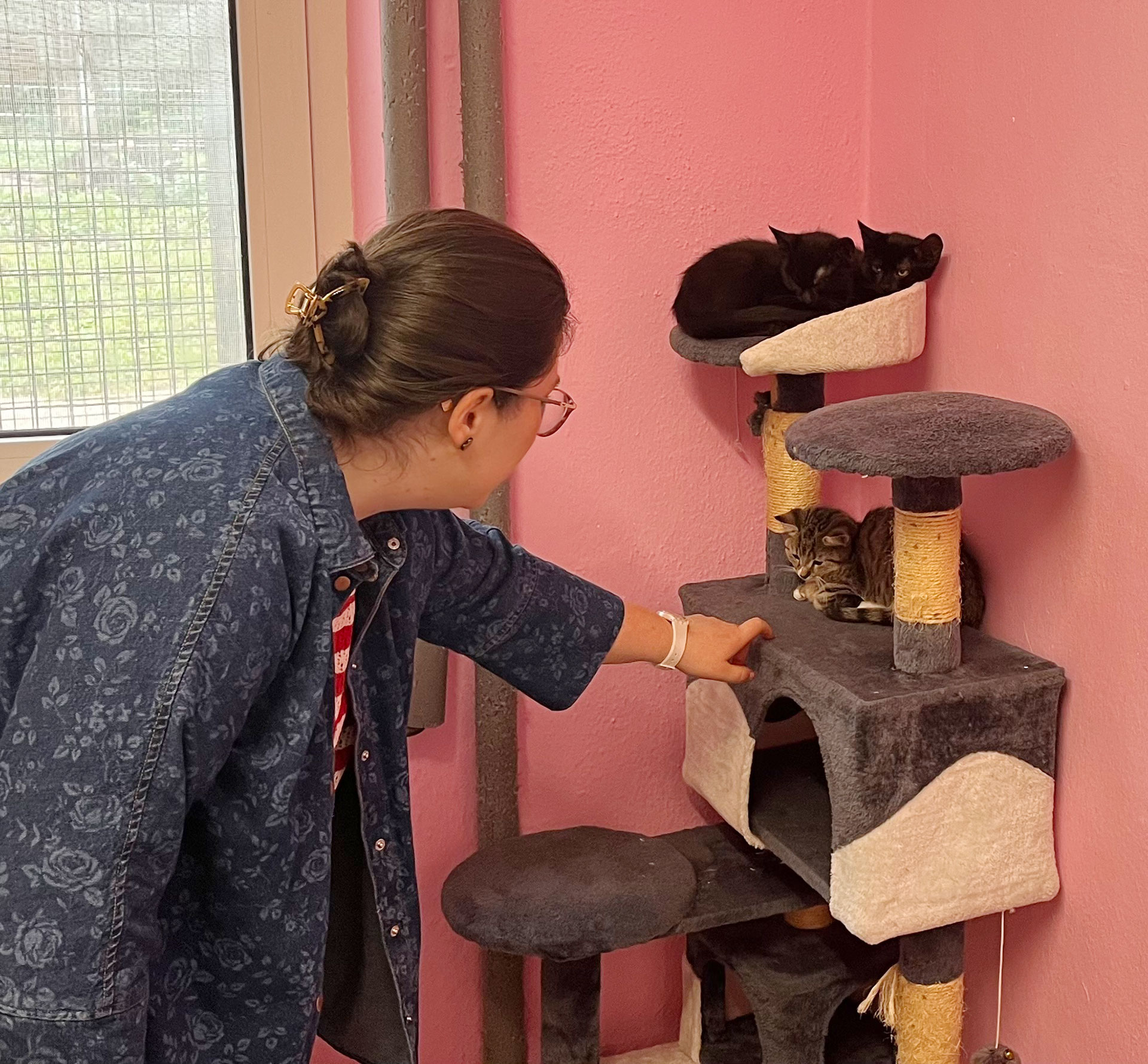 Nathalie Kroj mit Katzenbabys im Tierheim Homburg: Die Lage im Katzenschutz ist angespannt, das Tierheim hat derzeit seine Kapazitätsgrenze erreicht. Fotos: Julie Jager/Stadtverwaltung